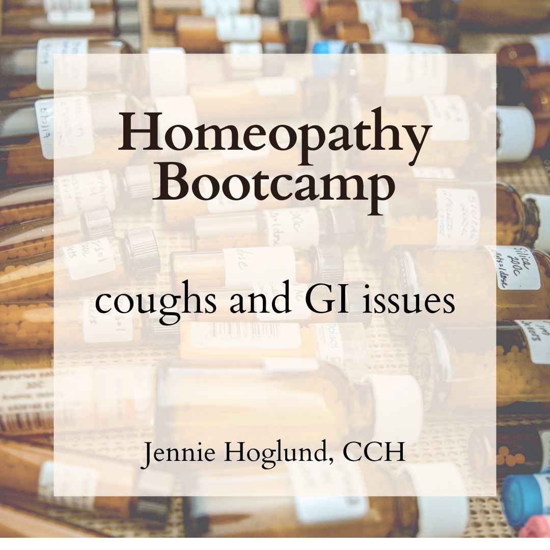 Join Jennie Hoglund, CCH for 2 sessions in which we'll address acute homeopathic remedies for addressing coughs and GI distress.